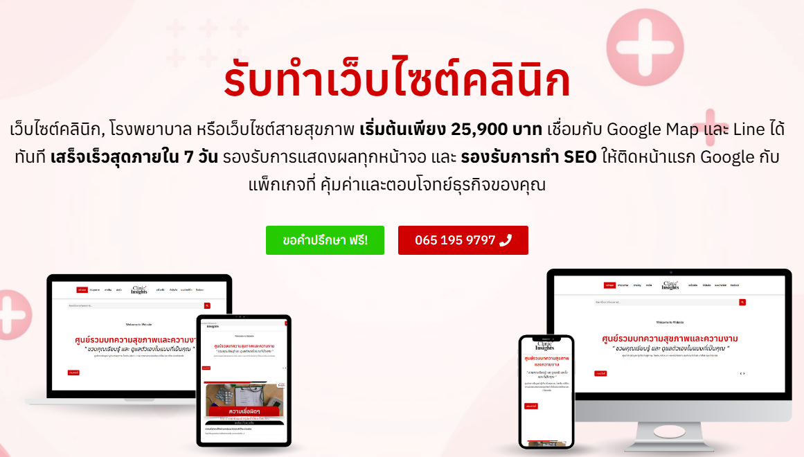 ในปัจจุบัน คลินิกเฉพาะทางมีการแข่งขันสูงและกลุ่มเป้าหมายเฉพาะตัว การมีเว็บไซต์ที่สวยและใช้งานง่ายอย่างเดียวอาจไม่เพียงพอ ClinicInsights จึงเปิดตัวบริการรับทำเว็บไซต์คลินิกเฉพาะทาง พร้อมทีมงานที่เข้าใจธุรกิจสุขภาพโดยเฉพาะ